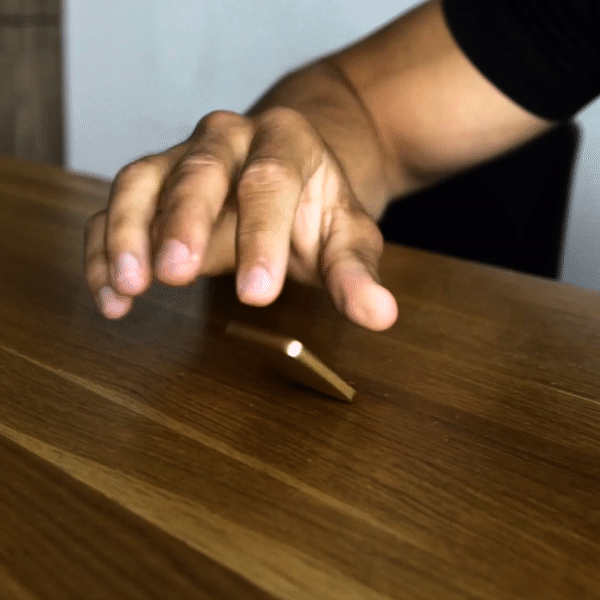 It can be played on any table. The solid body and smooth surface make it very pleasant to interact with. Although it may seem like a simple motion of continuous flips and rolls. It's a captivating challenge. The secret of mastering the movement is a gentle push. Once you get the hang of it there are endless possibilities!